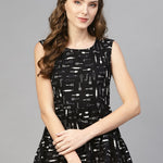 Black & White Printed Sleeveless Top With Round Neck