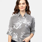 Black Printed Short Sleeve Top With Shirt Collor