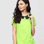 Parrot Green Top With Half Sleeves And Collar