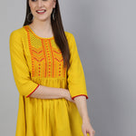 Embroidered Round Neck 3/4 Sleeve Rayon Flared Top