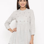 Closure - Embroidery With Mirror Work And Buttons On Yoke And Sleeves, Pompom On Hemline, Pleated Top