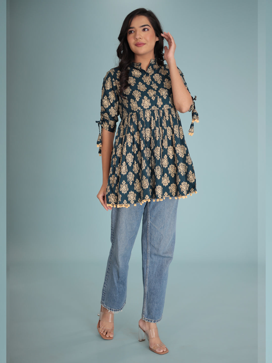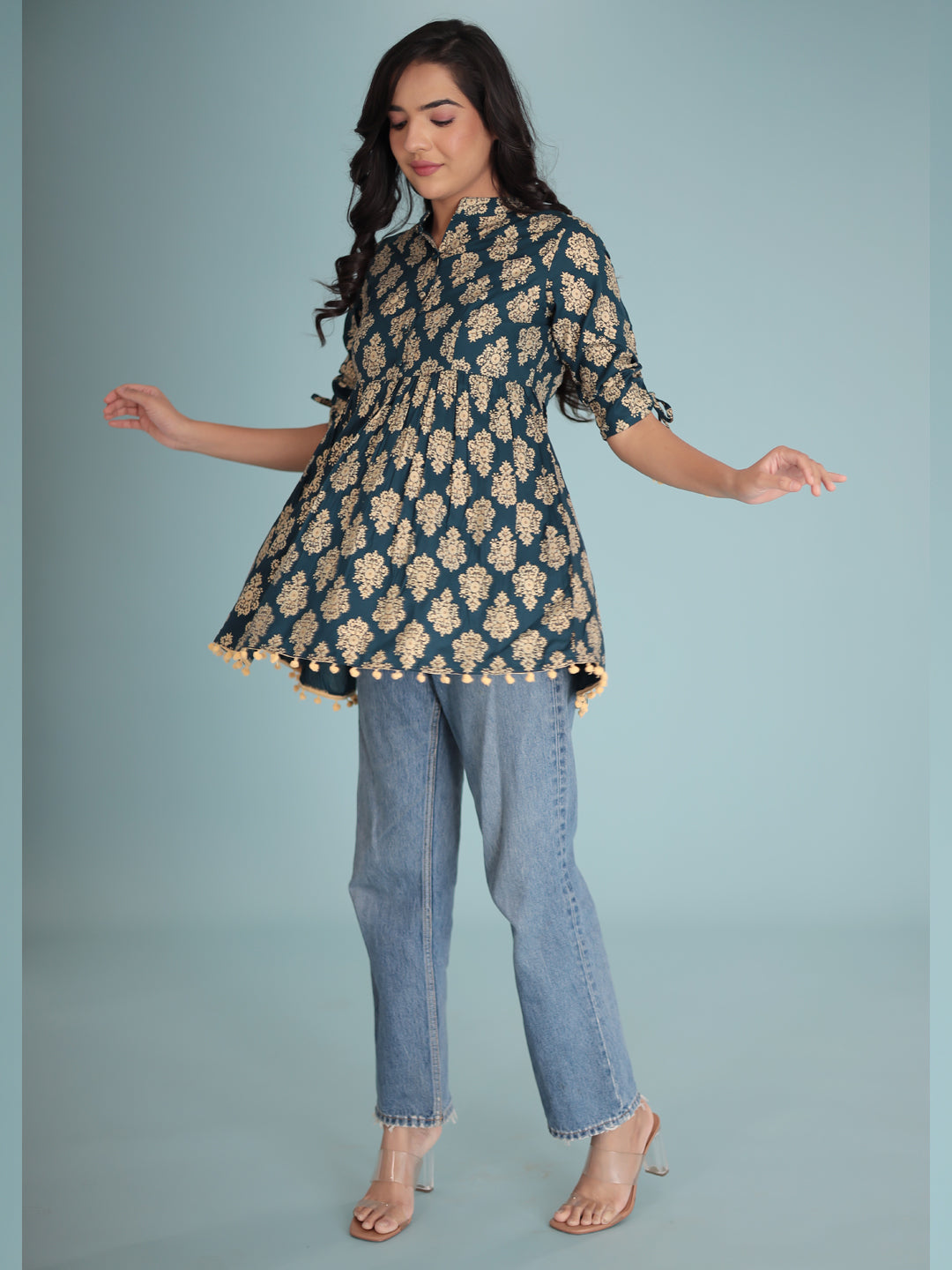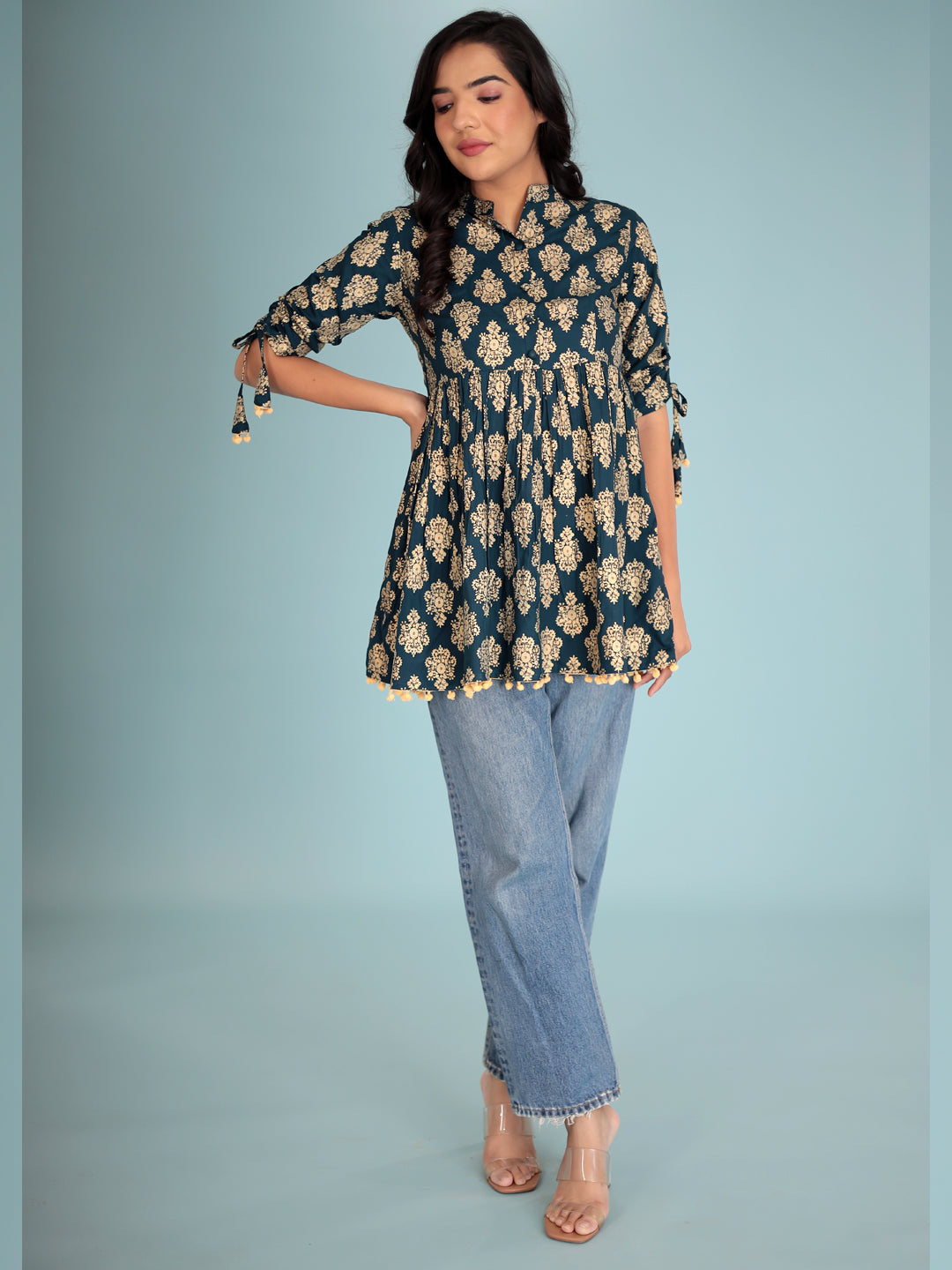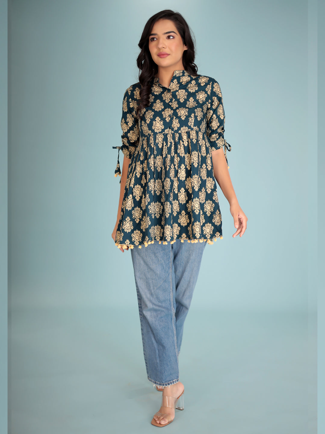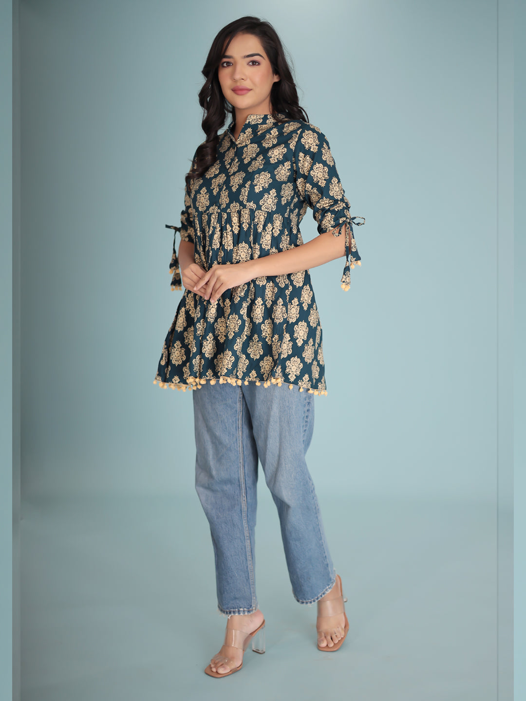 Women Blue gold-toned ethnic motifs print Top