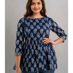 Cotton Printed 3/4 Sleeve Flared Round Neck Top (Preorder)