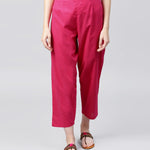 Solid Pink Ankle Length Cotton Regular Fit Trouser