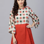 Women Red Printed Boat Neck Three-Quarter Sleeves Cotton Tunic