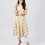 Women Off White Printed Round Neck Three-Quarter Sleeves Cotton Tunic