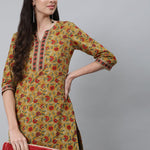 Green Printed Straight Tunic With Three Quarter Sleeves