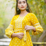 Mustard Rayon Flex Printed A-Line Tunic with Belt