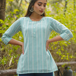 Blue & Multi Georgette Printed High-Low Tunic