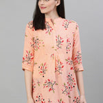 Peach-Colour & Red Printed Cotton A-Line Tunic