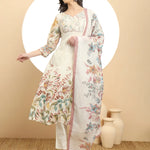 Yellow And White A Line Premium Mul Cotton Kurta Dupatta Pant Set