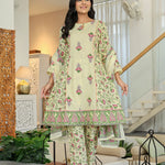 Yellow Cotton A Line Kurta Dupatta Set