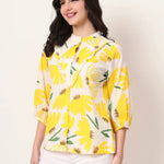 Yellow Cotton Mandarin Collar Shirt Style Top