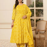 Yellow Embroidered Pure Cotton Anarkali Kurta Trouser With Dupatta Set