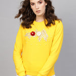 Yellow Floral Patch Sweatshirt, in Fleece fabric, Unlined, Regular Length, Comfort Fit, No Closure, Straight Hemline and features Floral Patch With Pearl Stud At Front