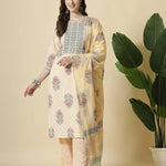 Yellow Floral Print Cotton Sequins Work Kurta Set With Pant & Dupatta