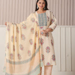 Yellow Floral Print Cotton Sequins Work Plus Size Kurta Set With Pant & Dupatta