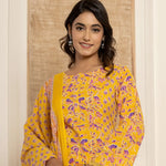 Yellow Printed Pakistani Style Kurta And Trousers With Dupatta Set