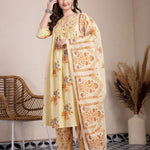Yellow Pure Cotton A-Line Pleated Kurta Dupatta Pant Set
