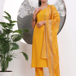 Yellow & Gold Solid Kurta with Trousers & Dupatta