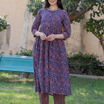 Blue And Red Paisley A-line gathered kurta And Trouser Set