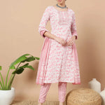 Pink Floral Print Sequins Work Straight Kurta Trouser And Dupatta Set