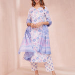 Violet And White Floral Print Straight Kurta Trouser And Dupatta Set